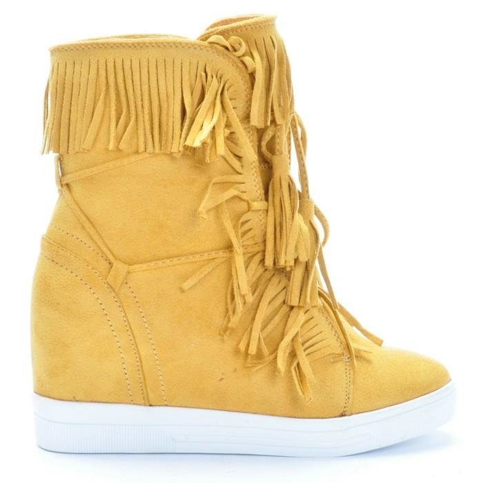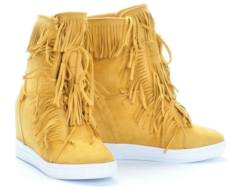 MIODOWE SNEAKERSY NA KOTURNIE Z FRĘDZLAMI CASADIA