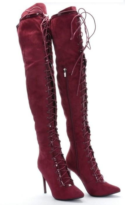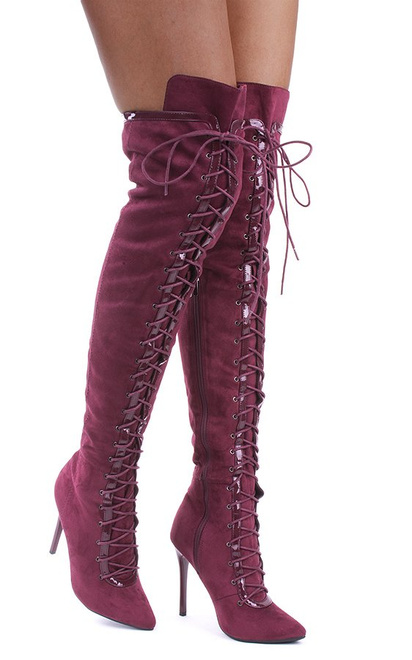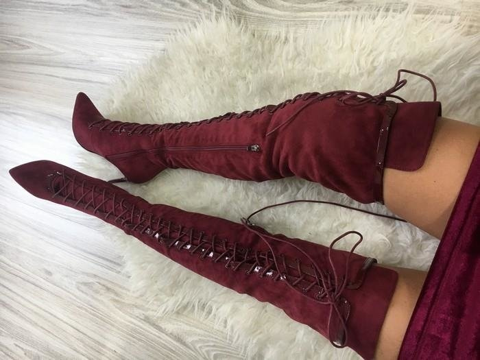 BORDOWE OCIEPLANE SZNUROWANE KOZAKI ZA KOLANO ADELLE