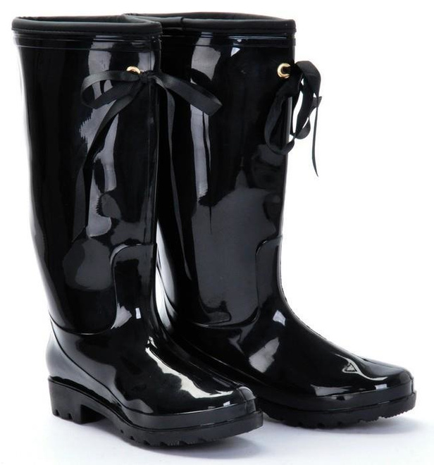Kaloszki bardzo ładne, błyszczące, dość miękka guma, ale w cholewce dość wąskie, na szczupłą łydkę idealne.