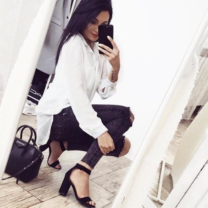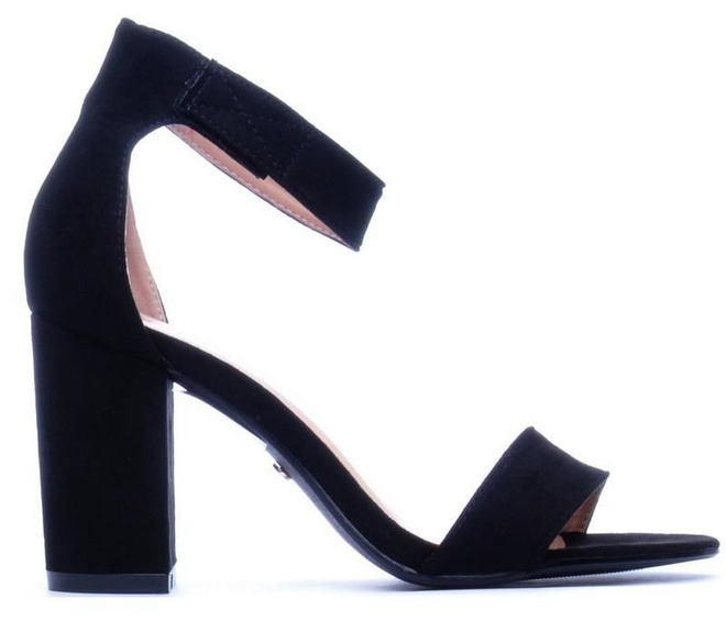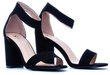 Czarne zamszowe sandały na słupku z zapięciem wokół kostki. Buty na wysokim, ale wygodnym i stabilnym słupku - modna alternatywa szpilek na sezon 2017.