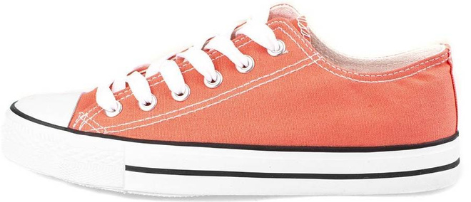 Trampki tenisówki w stylu converse’ów to prawdziwa klasyka wśród obuwia sportowego. Ponadczasowe tenisówki w modnym, brzoskwiniowym kolorze prezentują się stylowo przez długi czas. Możesz je nosić, gdzie chcesz i kiedy chcesz, łącząc swoje trampki sznurowane z dowolnymi elementami garderoby. Twoje stylizacje z brzoskwiniowymi tenisówkami będą wyglądać znakomicie nie tylko latem 2019, ale i w kolejnych sezonach. Całoroczne tenisówki posłużą Ci znacznie dłużej. Ich ponadczasowa prezencja będzie modna nawet za kilka sezonów, dlatego dzięki brzoskwiniowym trampkom Twoja garderoba uzupełni się o tanie buty na lata. Sznurowane, niskie trampki niejednokrotnie zabierzesz na wycieczkę za miasto, założysz je na podróż samolotem, a także uzupełnisz o nie stylizację na wyjścia do kina z przyjaciółkami. Brzoskwiniowe tenisówki założysz nawet do spódnic i sukienek, w ten sposób odejmując sobie lat.