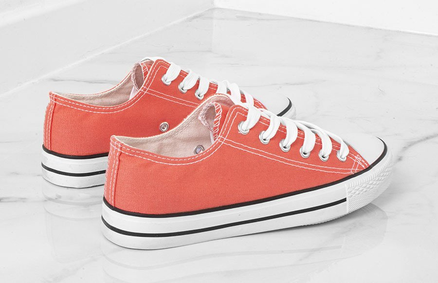 Tanie tenisówki trampki w stylu converse’ów pasują każdej kobiecie bez względu na wiek. Modne buty na lato 2019 sprawdzą się również w kolejnych sezonach – możesz nosić je przez długi czas i zawsze wyglądać stylowo. Twoje sportowe stylizacje uzupełnione o brzoskwiniowe trampki zaskoczą świeżością i kobiecością. Dzięki ponadczasowym trampkom w ciepłym odcieniu nawet podczas jazdy rowerem lub gry w siatkówkę będziesz prezentować się stylowo. Niskie trampki zapewnią Ci komfort w każdej sytuacji, a Twoje stopy odpoczną w wygodnym sportowym obuwiu, które możesz zakładać również na co dzień. Sznurowanie umożliwia dopasowanie butów do kształtu stopy, dlatego będzie Ci w nich wygodnie nawet po wielu godzinach stania lub chodzenia.