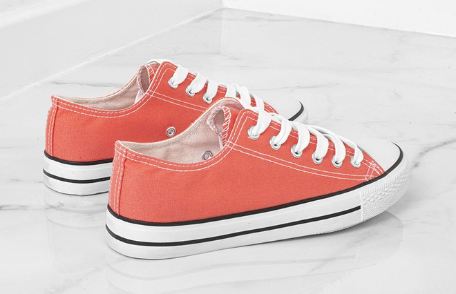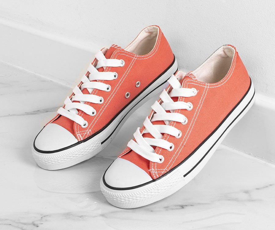 Trampki tenisówki w kolorze brzoskwiniowym – wygodne, tanie obuwie na wiele sezonów
