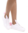 Białe trampki damskie z pomponikiem - ogonkiem i uszami królika. Model Bunny to idealna propozycja dla osób szukających fantazyjnych, innych niż wszystkie trampek. Buty wykonane z wysokogatunkowej skóry ekologicznej. Motyw króliczka to hit kolekcji 2017. Buty wiązane na sznurówki. Bardzo wygodne dzięki grubej, płaskiej podeszwie. Idealne na wiosnę i lato!