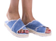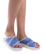 Jasnoniebieskie, jeansowe klapki na grubej podeszwie. Ciekawy wygląd oraz wygoda.