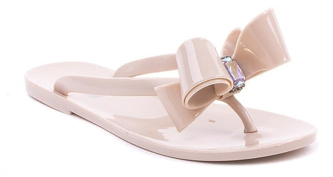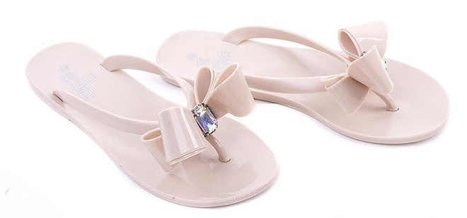 Meliski japonki w beżowym kolorze to niekwestionowany hit na lato 2019. Eleganckie japonki w stylu glamour dodają szyku nawet prostym, plażowym stylizacjom. Z powodzeniem możesz zakładać je również na miasto, gdy upalne dni skłaniają do noszenia lekkich butów, które odsłaniają całą stopę. Modne meliski w formie japonek zdobi stylowa kokarda z dużym, błyszczącym kamieniem. Dzięki modnej ozdobie buty na lato 2019 staną się Twoimi ulubionymi japonkami – z chęcią będziesz nosić je również w kolejnych sezonach. Beżowy kolor zawsze jest w modzie, a buty w tej barwie pasują do wielu stylizacji. Wygodne płaskie meliski pomogą Ci odprężyć się w gorące, letnie dni, odciążając Twoje nogi i dając poczucie swobody. Sprawdź sama, jak komfortowe i eleganckie są japonki z kokardą w stylu glamour.