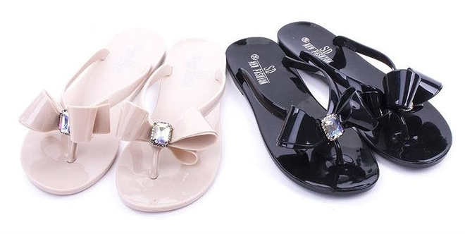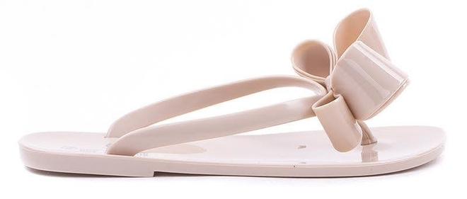 Stylowe japonki z kokardą to obuwie dla modnych i odważnych kobiet. Japonki meliski wykonane z błyszczącego tworzywa sztucznego pomogą Ci zadać szyku podczas wypadów na miasto w upalne dni, na plaży, a także w każdej innej sytuacji, gdy chcesz czuć się lekko i komfortowo. Modne japonki na lato są lekkie, dlatego w czasie upałów sprawdzają się idealnie. Ich odporność na zabrudzenia, wodę i intensywne użytkowanie sprawi, że będziesz je nosić nie tylko w nadchodzącym sezonie, ale i w kolejnych latach. Japonki z kokardą bez trudu wyczyścisz z wszelkich zabrudzeń – wystarczy, że użyjesz wilgotnej, miękkiej ściereczki lub gąbeczki. Stylowe i praktyczne buty na lato 2019 zaskoczą Cię wygodą, jaką zapewniają, dlatego będziesz je zakładać, gdy tylko będziesz mieć okazję.