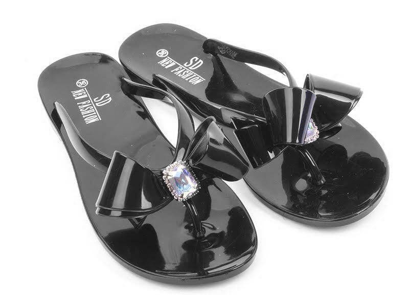 Gumowe klapki-japonki z piękną ozdobą na pasku.