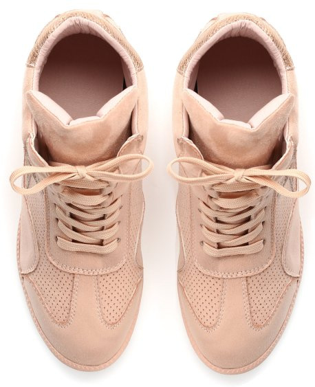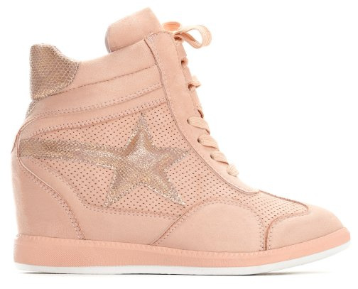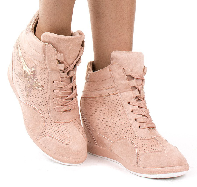 Stylowe sneakersy na koturnie z gwiazdką. Wykonane ze skóry ekologicznej typu zamsz, bardzo wygodne.