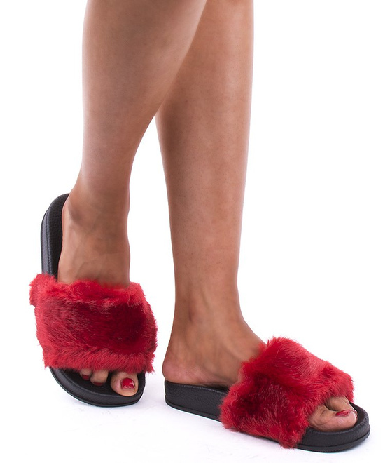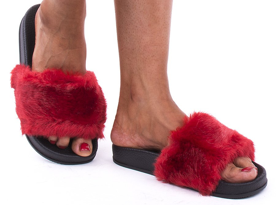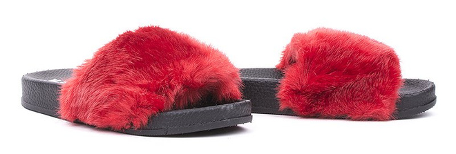Najmodniejsze klapki z futerkiem. Na gumowej podeszwie, bardzo wygodne i stylowe. Buty sprawdzą się zarówno jako kapcie po domu a także jako element codziennych stylizacji.
