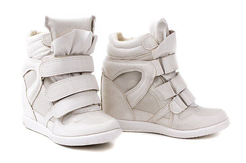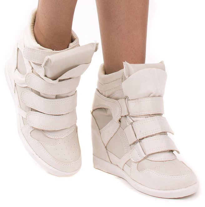 Buty sportowe na koturnie wykonane z zamszu ekologicznego. Zapinane na rzepy, na gumowej podeszwie w kolorze buta. Buty bardzo wygodne i stabilne.
