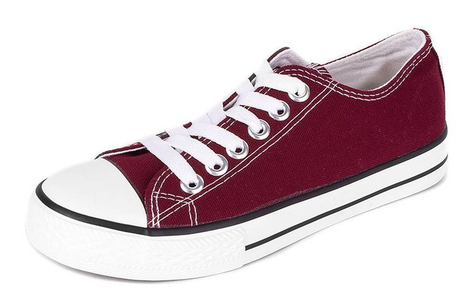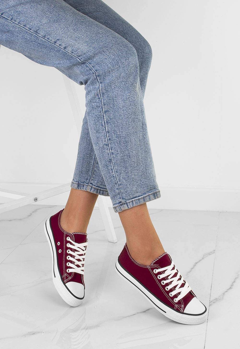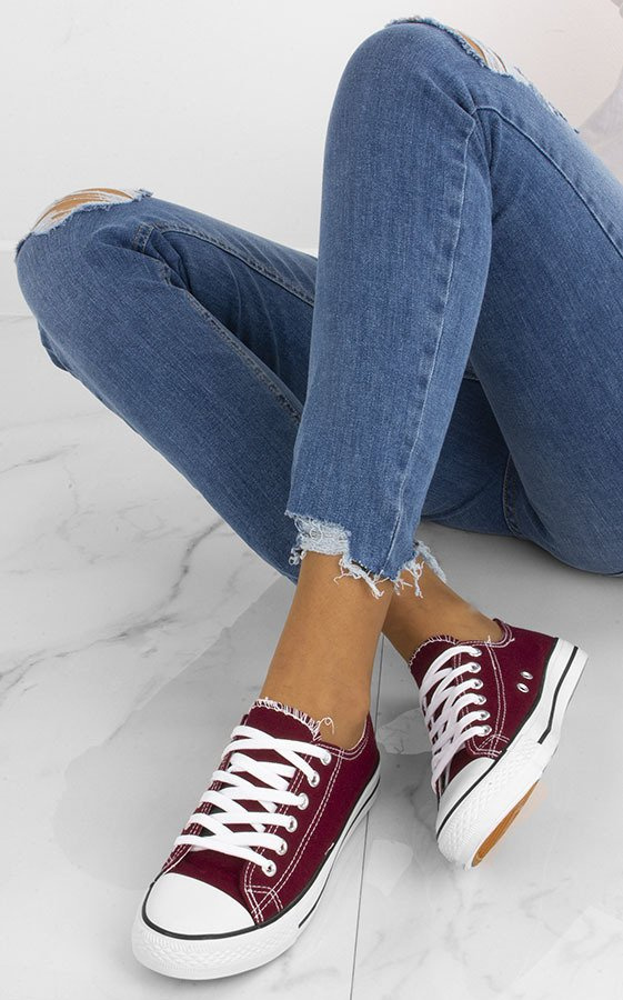 Sportowe trampki w bordowym kolorze – modny dodatek na lato 2019