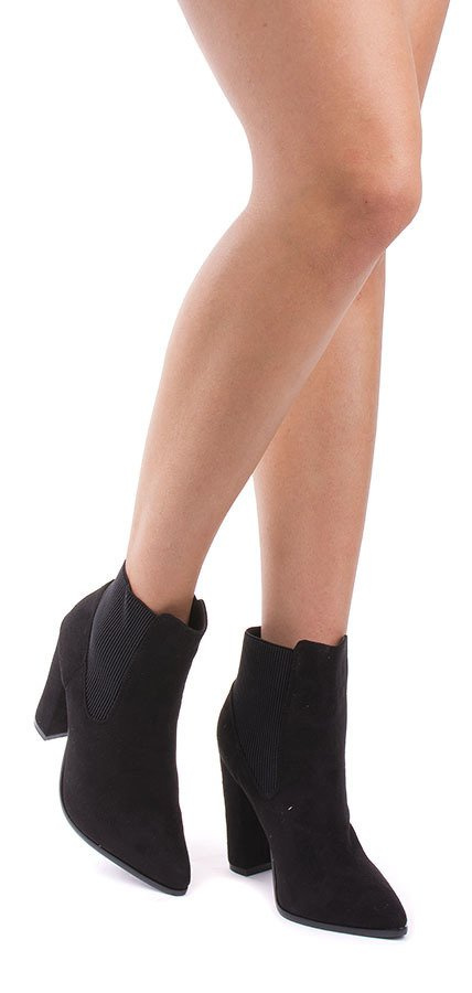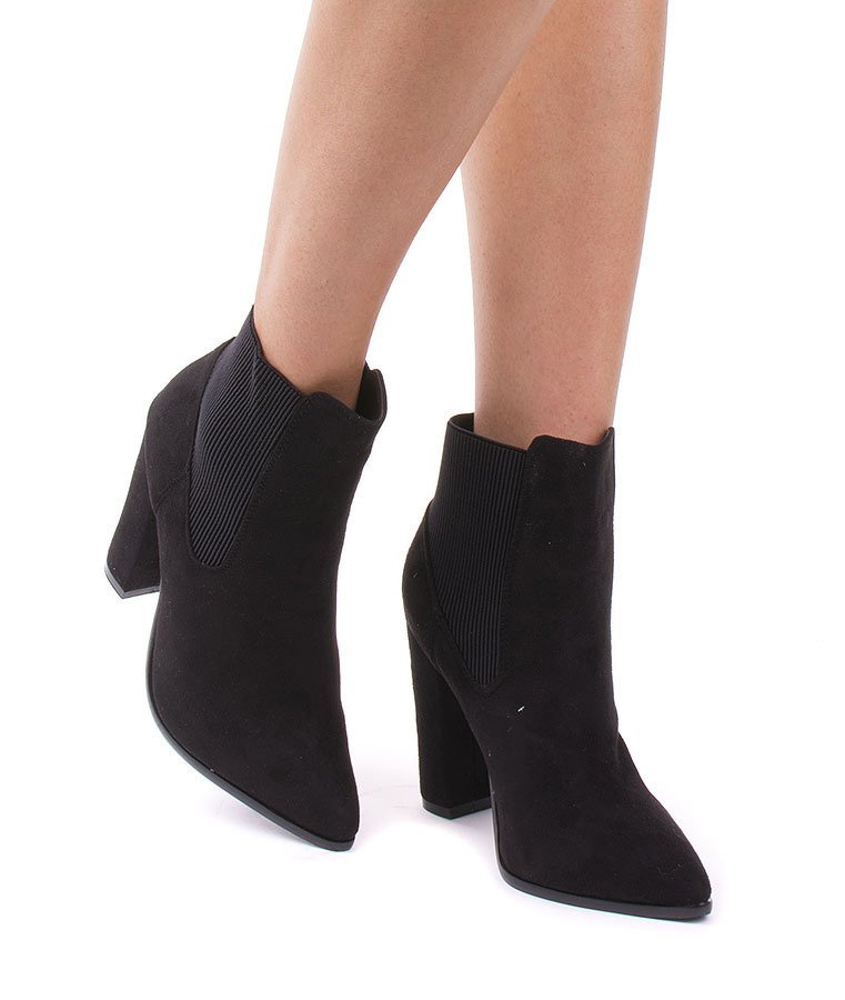 Czarne zamszowe botki wykonane z czarnego zamszu. Idealne na wiosnę - wygodne i stylowe!