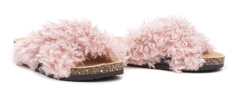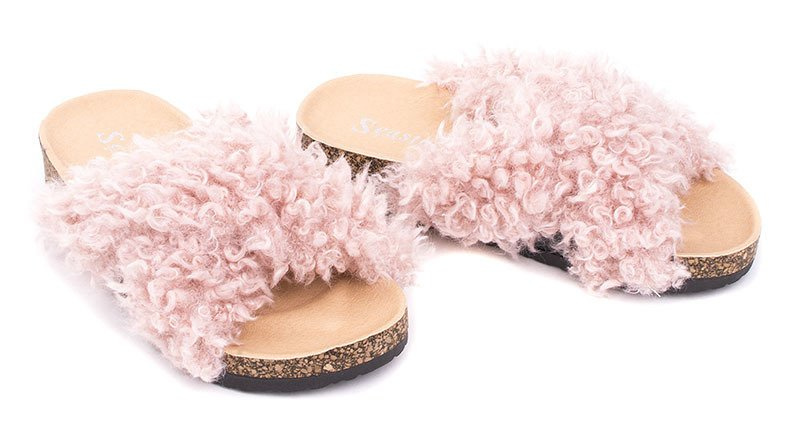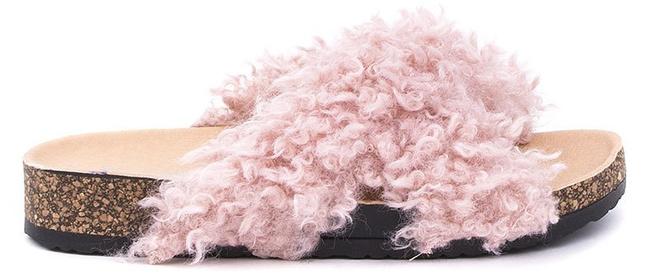 Najmodniejsze klapki z futerkiem z odkrytymi palcami. Na korkowej podeszwie, bardzo wygodne i stylowe. Buty sprawdzą się zarówno jako kapcie po domu a także jako element codziennych stylizacji.