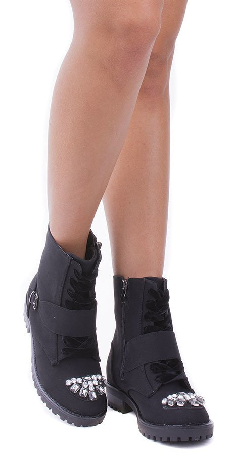 Wykonane z wysokiej jakości skóry ekologicznej typu zamsz ,czarne botki z pięknymi cyrkoniami.