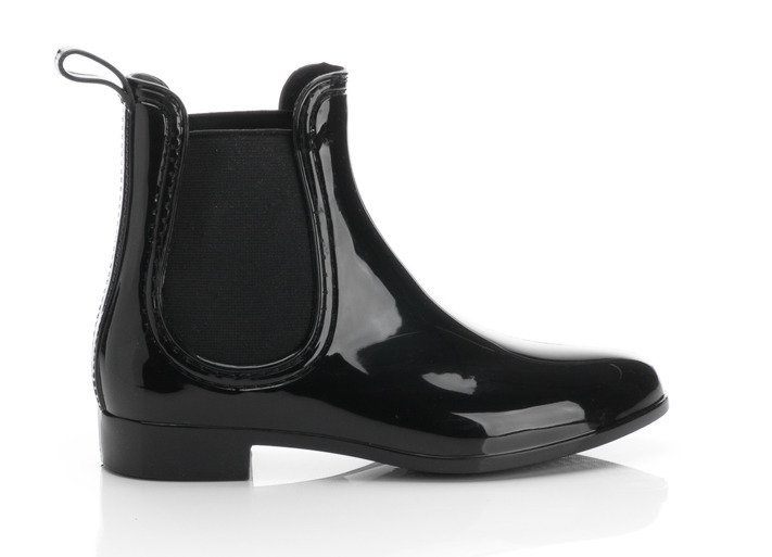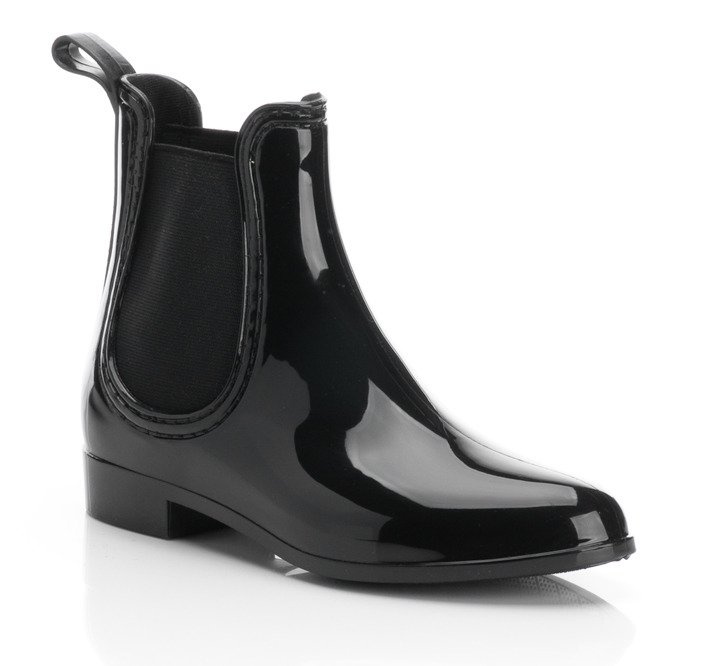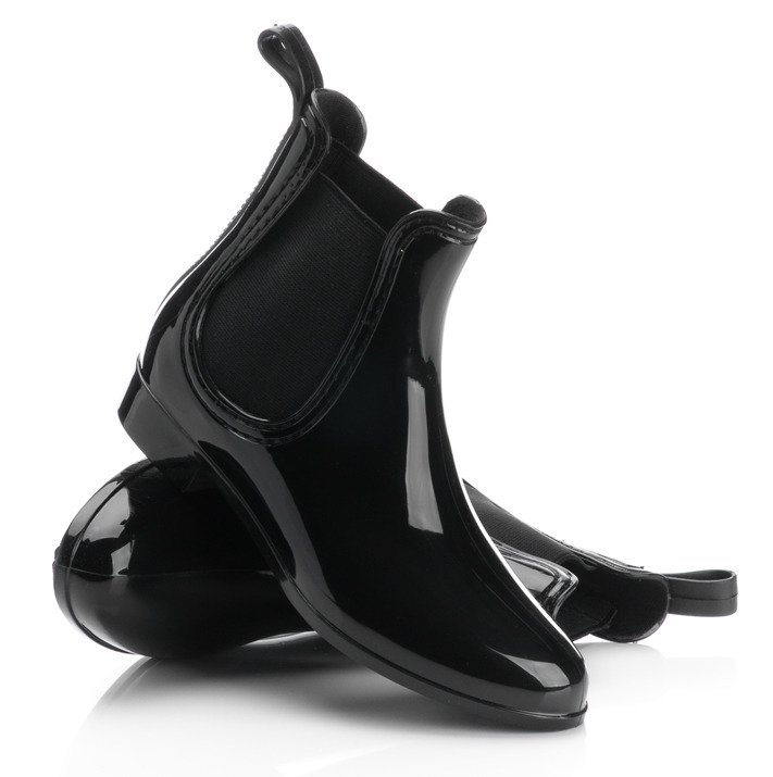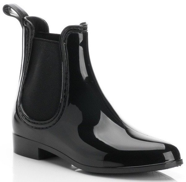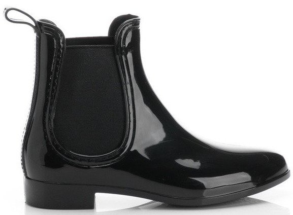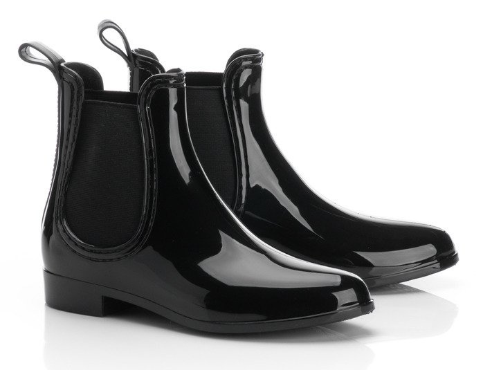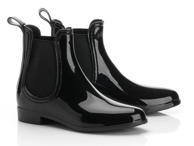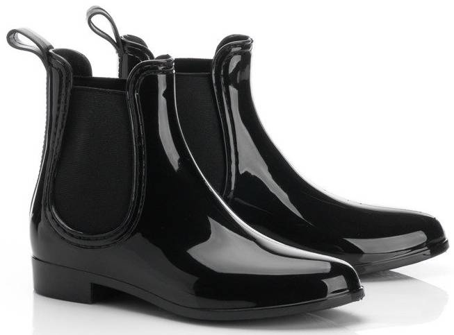 Błyszczące, krótkie kalosze idealne na deszczową aurę.