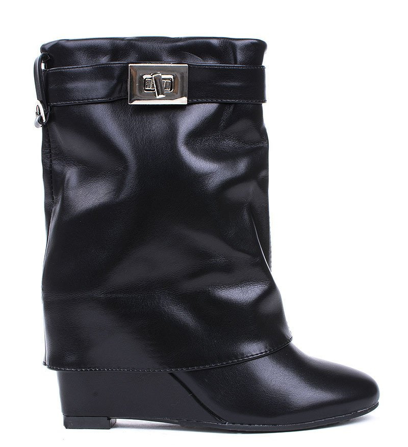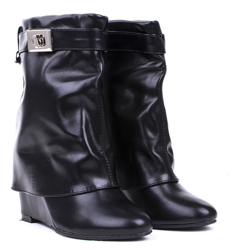 CZARNE OCIEPLANE KOZAKI NA KOTURNIE EKO SKÓRA GIVEN