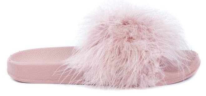 Najmodniejsze klapki z futerkiem. Na gumowej podeszwie, bardzo wygodne i stylowe. Buty sprawdzą się zarówno jako kapcie po domu a także jako element codziennych stylizacji.