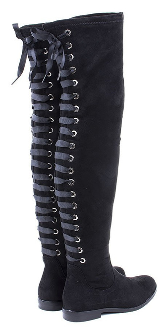 CZARNE OCIEPLANE WYSOKIE KOZAKI ZA KOLANO SZNUROWANE BITNEY