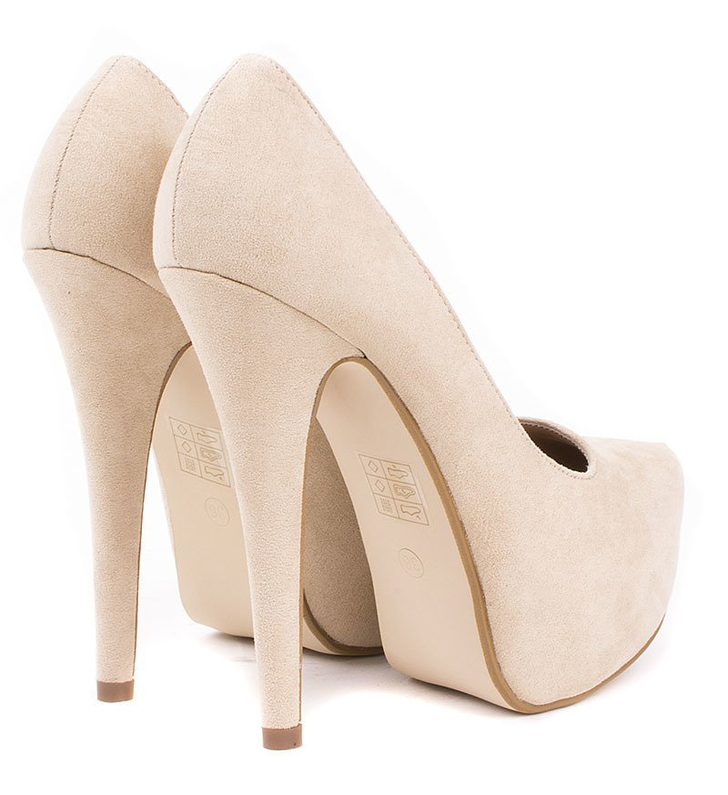 BEŻOWE ZAMSZOWE SZPILKI NA PLATFORMIE INFILIO