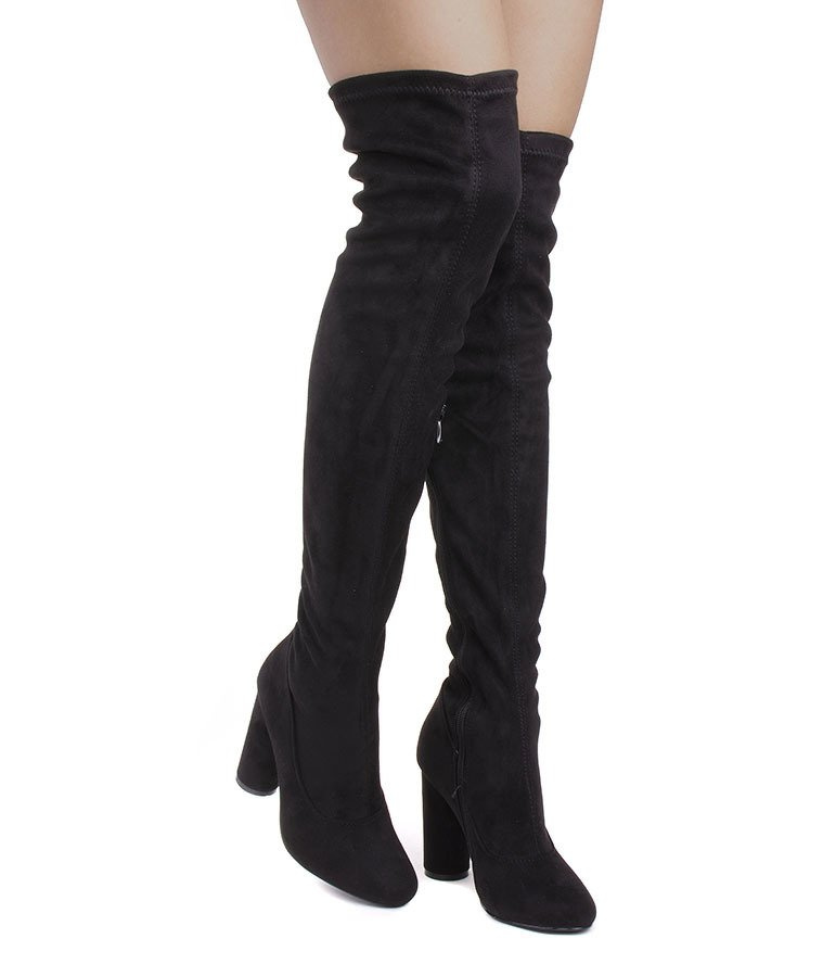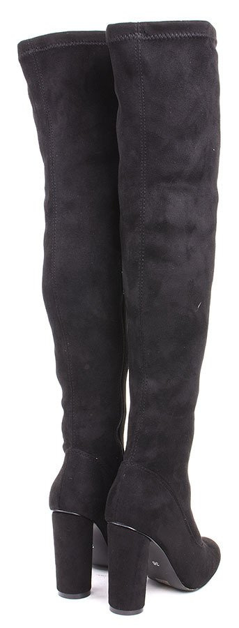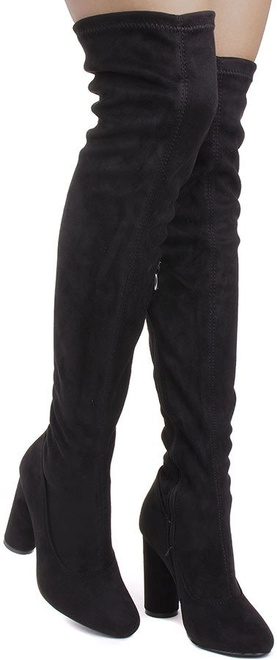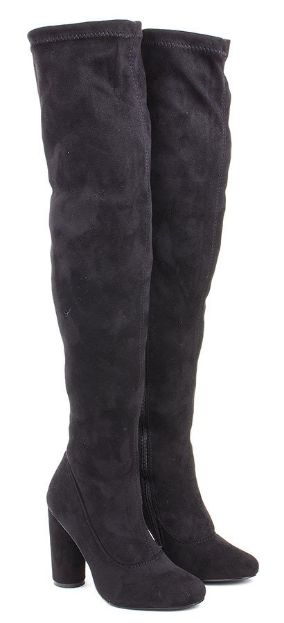 CZARNE ZAMSZOWE KOZAKI ZA KOLANO NA SŁUPKU JODIE