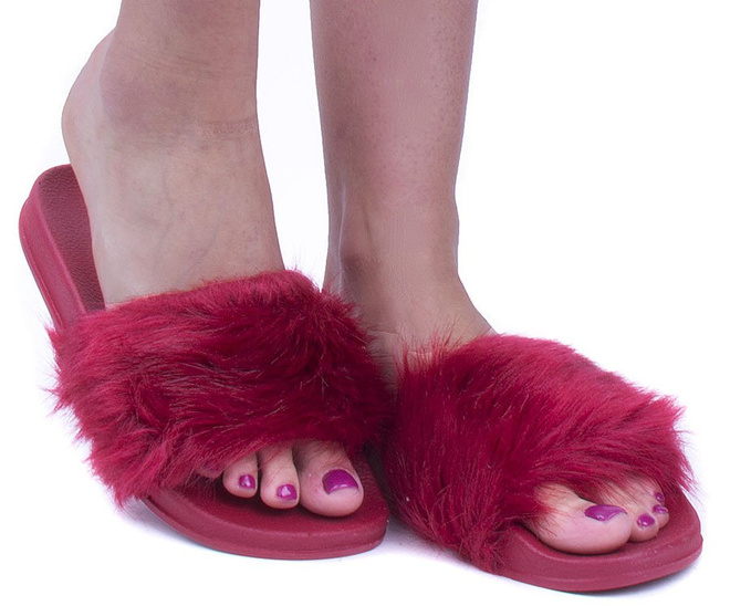 Najmodniejsze klapki z długim futerkiem. Na gumowej podeszwie, bardzo wygodne i stylowe. Buty sprawdzą się zarówno jako kapcie po domu a także jako element codziennych stylizacji.