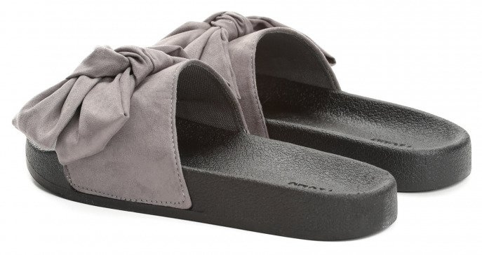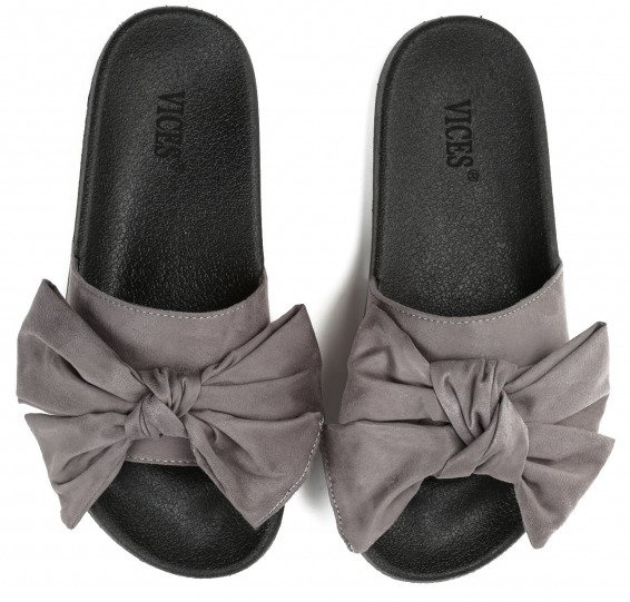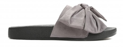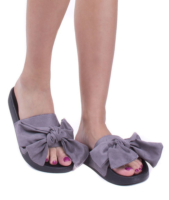 SZARE GUMOWE KLAPKI Z KOKARDĄ ZAMSZ MONA