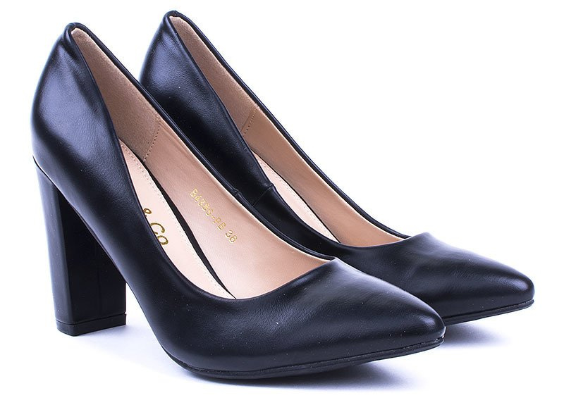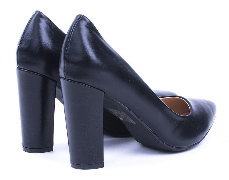BARDZO WYGODNE CZARNE CZÓŁENKA NA STABILNYM SŁUPKU. WYKONANE Z WYSOKOGATUNKOWEJ SKÓRY EKOLOGICZNEJ. IDEALNE DLA KOBIET CENIĄCYCH SOBIE WYGODĘ ORAZ ELEGANCKI WYGLĄD.