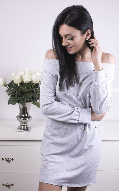 DRESOWA SZARA SUKIENKA Z PEREŁKAMI. IDEALNY KRÓJ DLA KOBIET CENIĄCYCH SOBIE CIEKAWY WYGLĄD I WYGODĘ. OPADAJĄCE RAMIONA DODAJĄ SUKIENCE LEKKOŚCI A PEREŁKI BARDZO MODNEGO WYGLĄDU. WYMIARY MIERZONE SĄ NA PŁASKO, BEZ ROZCIĄGANIA. MOGĄ SIĘ RÓŻNIĆ O OKOŁO 1-2 CM.
