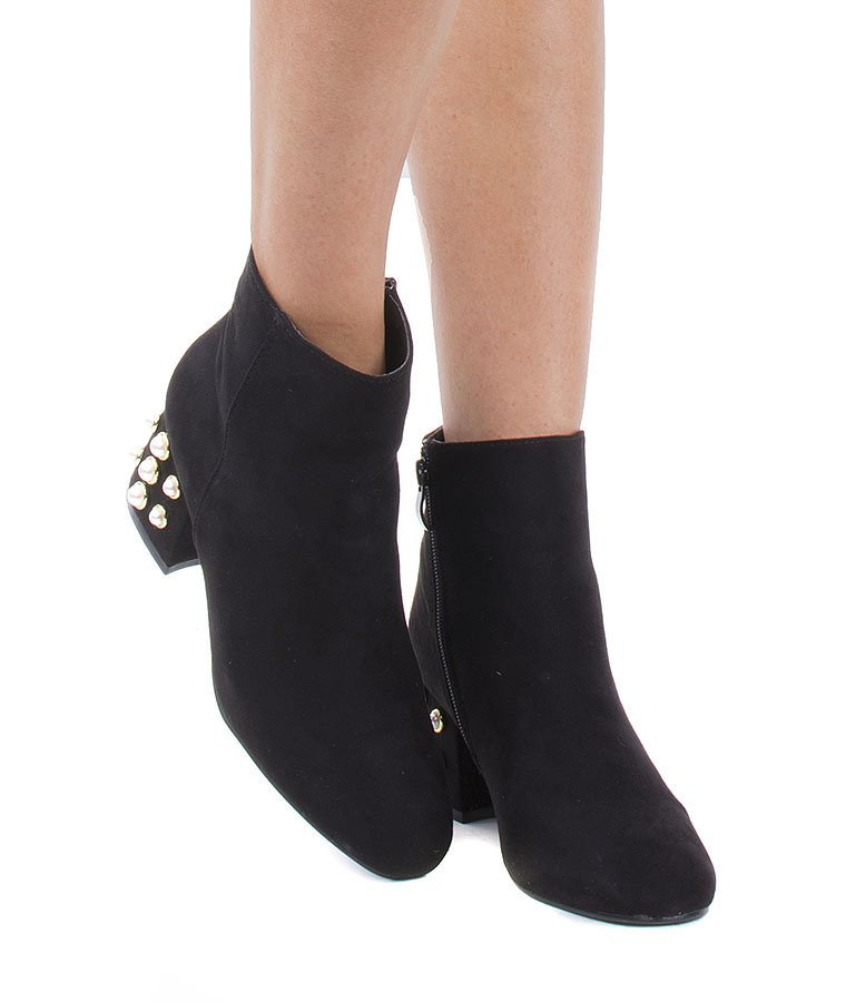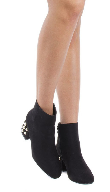 CZARNE ZAMSZOWE BOTKI NA SŁUPKU Z PEREŁKAMI MODI