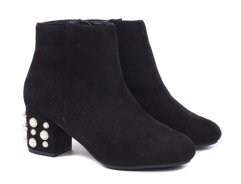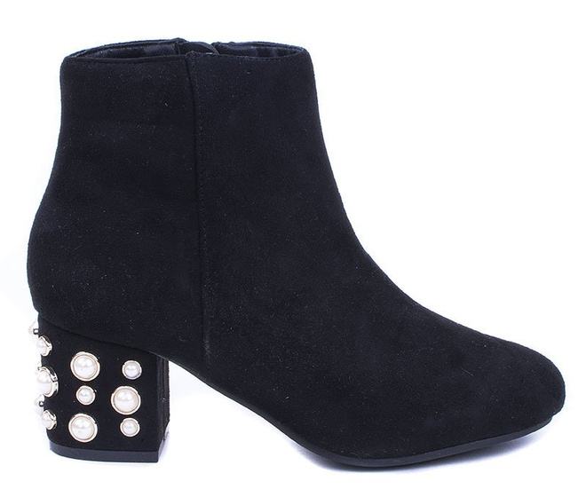 NAJMODNIEJSZE W SEZONIE CZARNE BOTKI Z PIĘKNYMI PEREŁKAMI NA OBCASIE. ALTERNATYWA DLA OSÓB KTÓRE CENIĄ SOBIE WYGODĘ I MODNY WYGLĄD. BUCIKI SĄ WYKONANE ZE SKÓRY EKOLOGICZNEJ TYPU ZAMSZ.