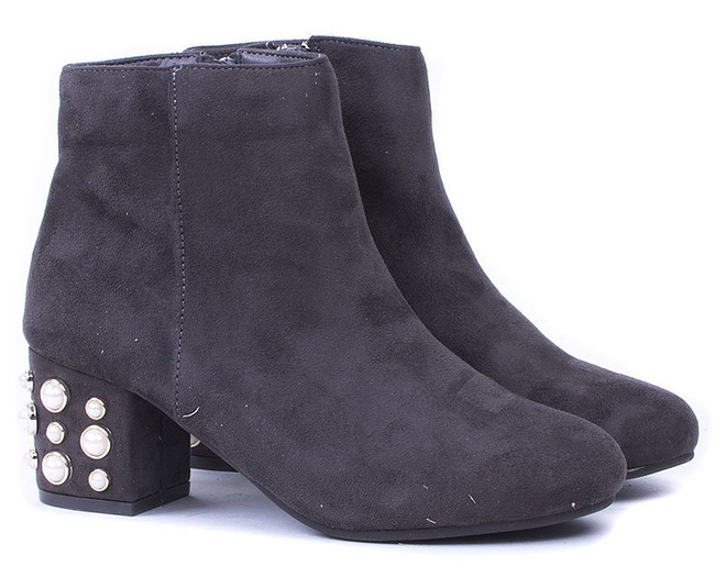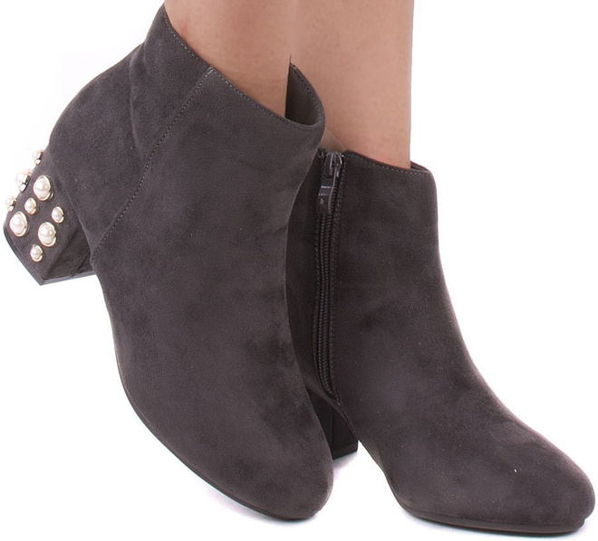 NAJMODNIEJSZE W SEZONIE SZARE BOTKI Z PIĘKNYMI PEREŁKAMI NA OBCASIE. ALTERNATYWA DLA OSÓB KTÓRE CENIĄ SOBIE WYGODĘ I MODNY WYGLĄD. BUCIKI SĄ WYKONANE ZE SKÓRY EKOLOGICZNEJ TYPU ZAMSZ.