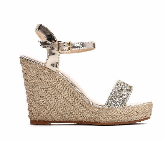 ZŁOTE SANDAŁY NA KOTURNIE Z BROKATEM ALDI