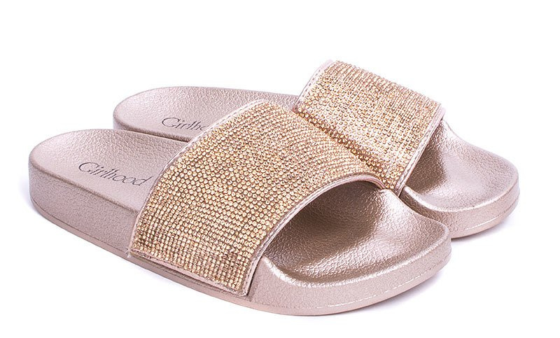 ŚLICZNE KLAPKI Z CYRKONIAMI W KOLORZE ZŁOTYM. BARDZO DOBRZE WYPROFILOWANA PODESZWA ZAPEWNIA KOMFORT NOSZENIA PRZEZ CAŁY DZIEŃ. BARDZO MODNE I WYGODNE. PODESZWA BUCIKÓW JEST WYKONANA Z GUMY.