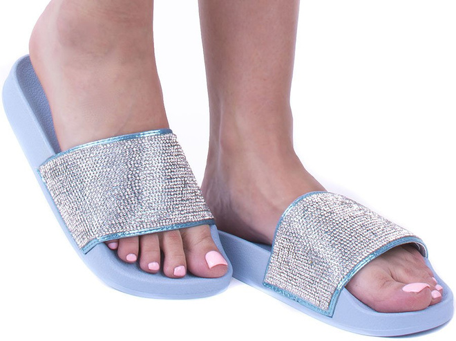 ŚLICZNE KLAPKI Z CYRKONIAMI W KOLORZE NIEBIESKIM. BARDZO DOBRZE WYPROFILOWANA PODESZWA ZAPEWNIA KOMFORT NOSZENIA PRZEZ CAŁY DZIEŃ. BARDZO MODNE I WYGODNE. PODESZWA BUCIKÓW JEST WYKONANA Z GUMY.