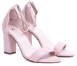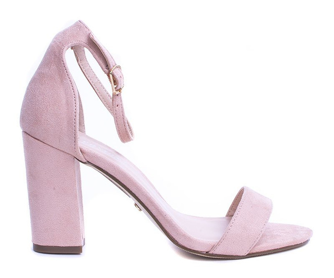 RÓŻOWE ZAMSZOWE SANDAŁY NA SŁUPKU Z ZAPIĘCIEM WOKÓŁ KOSTKI. SANDAŁKI NA WYGODNYM I STABILNYM SŁUPKU.