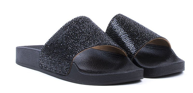 CZARNE GUMOWE KLAPKI Z CYRKONIAMI DIAMONDS