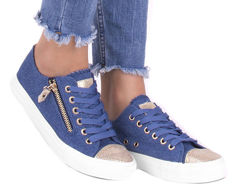 NIEBIESKIE TRAMPKI ZE ZŁOTYM NOSKIEM JEANS VIONA