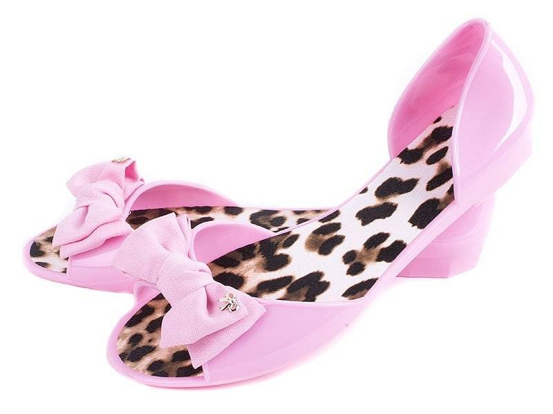 Zawsze modne gumowe balerinki, meliski z kokardką. Model który zagościł w garderobie niemalże każdej Kobiety ! Idealne na urlop i do pracy.