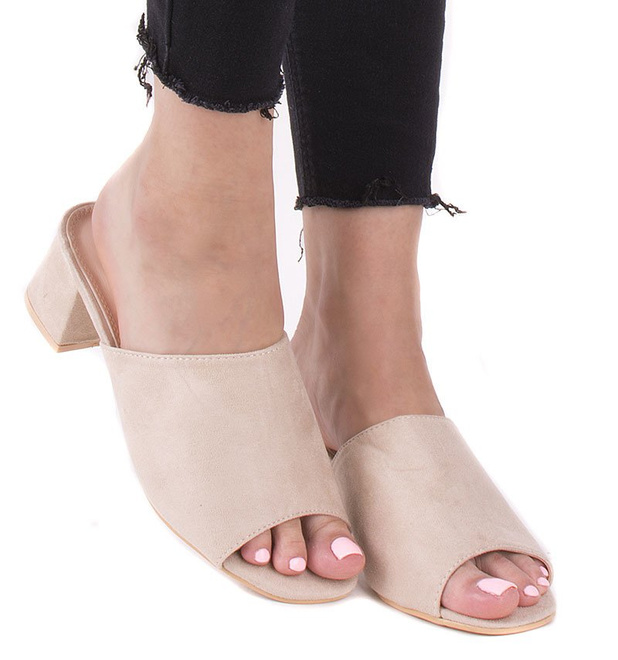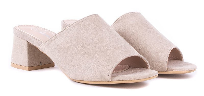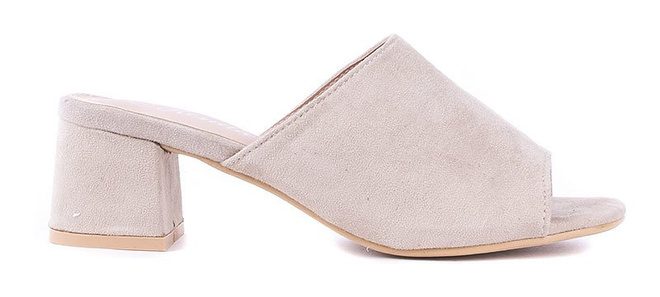 Zamszowe klapki na 5 cio centymetrowym stabilnym obcasie. Idealne dla kobiet które nie wyobrażają sobie życia bez obcasów. Modne i bardzo wygodne.