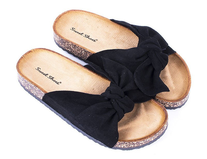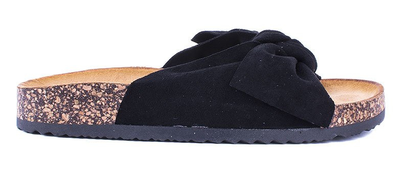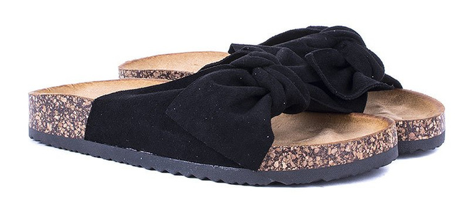 CZARNE ZAMSZOWE KLAPKI Z KOKARDĄ CELIA