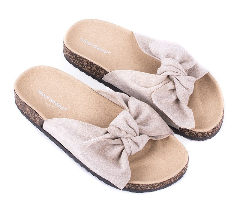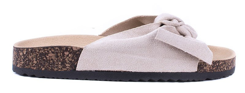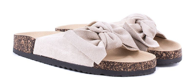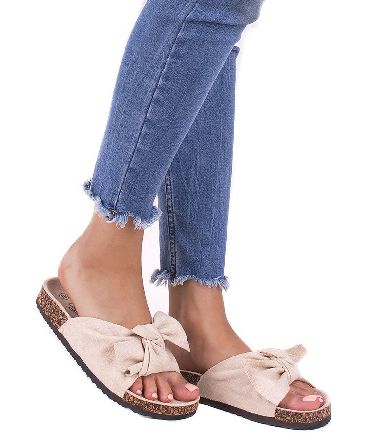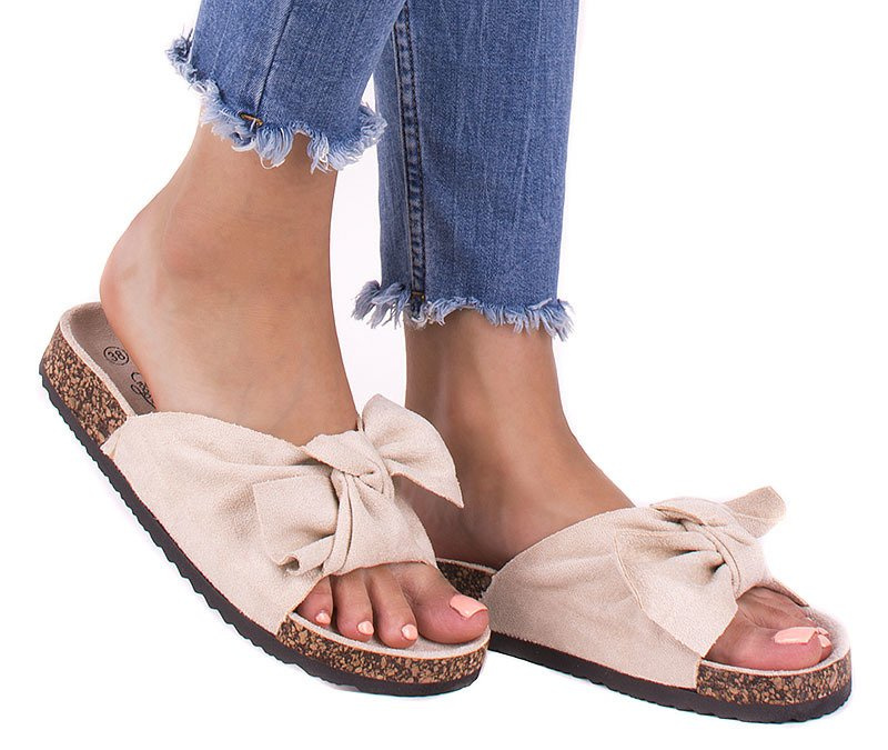 BEŻOWE ZAMSZOWE KLAPKI Z KOKARDĄ CELIA