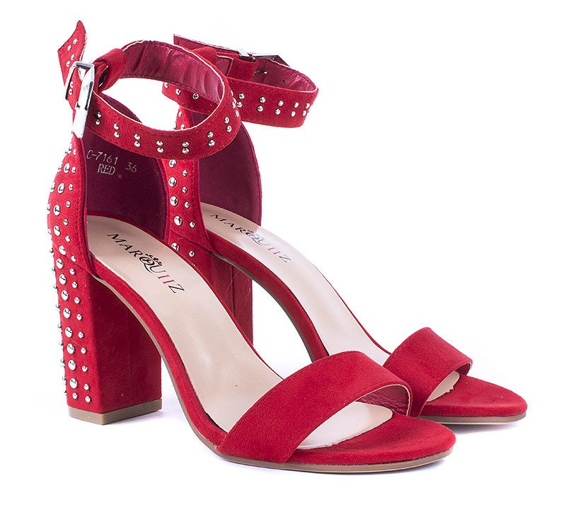 CZERWONE ZAMSZOWE SANDAŁY NA SŁUPKU Z DŻETAMI SIMPLY