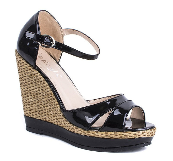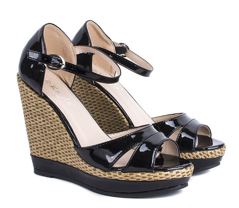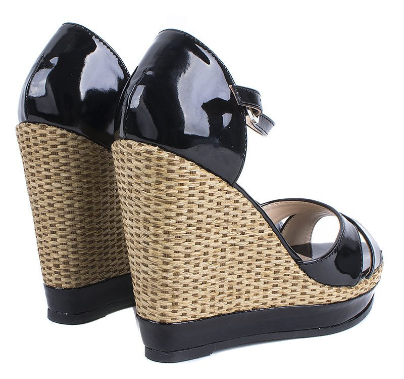 CZARNE SANDAŁY LAKIEROWANE NA KOTURNIE RAYN