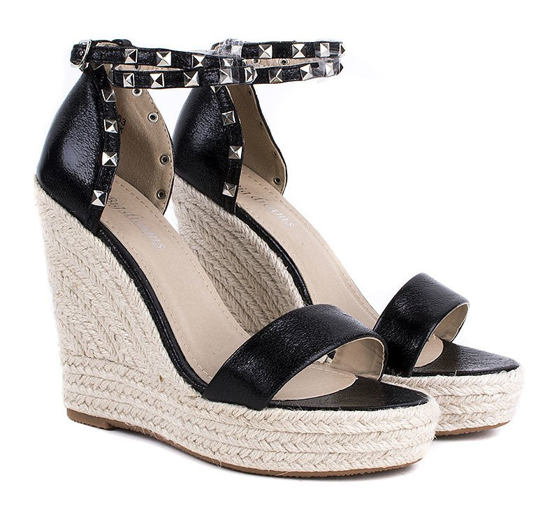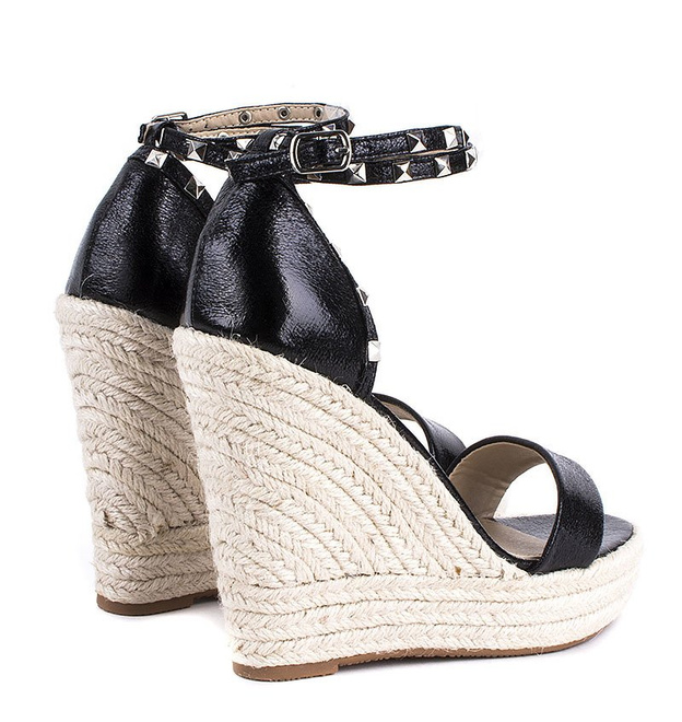 CZARNE SANDAŁKI ESPADRYLE NA KOTURNIE. BARDZO WYGODNE, DZIĘKI DOBRZE WYPROFILOWANEJ PODESZWIE ORAZ PLATFORMIE.