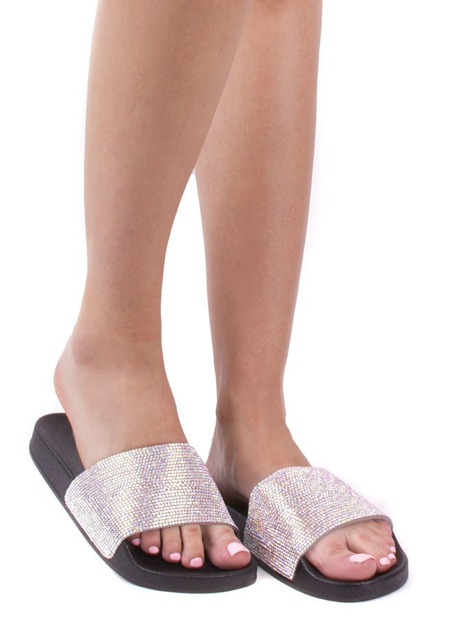 Klapki z cyrkoniami Diamonds spośród innego letniego obuwia wyróżnia przede wszystkim to, że mają utworzony przez maleńkie kamyki pasek opalizujący. W słońcu obuwie pięknie lśni i zachwyca. Ponadto klapki charakteryzują się: