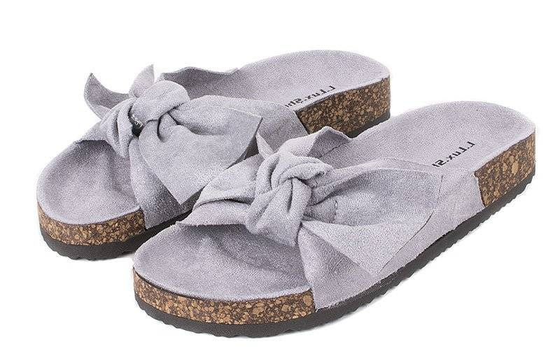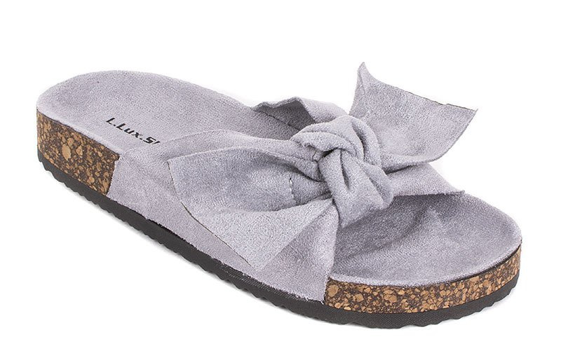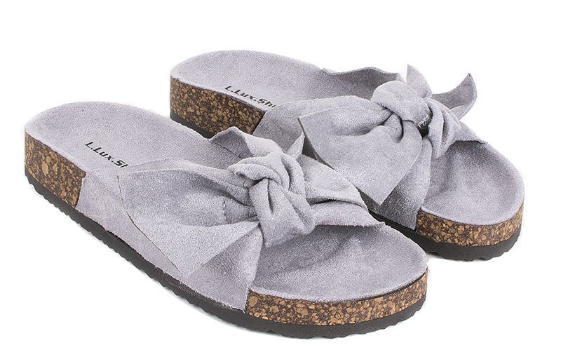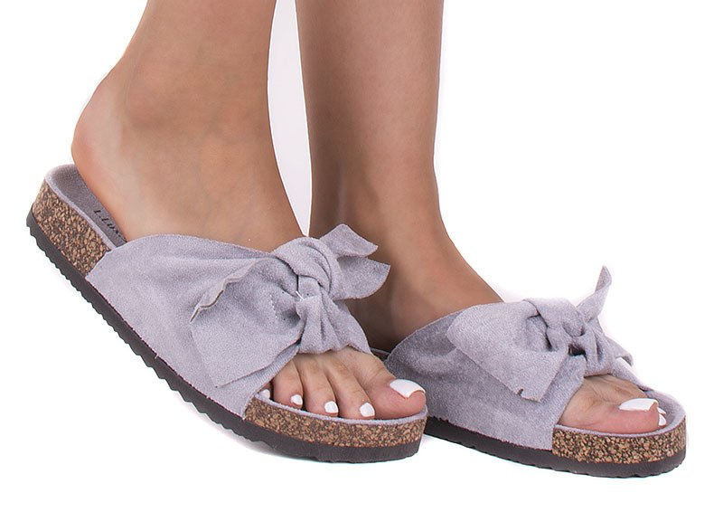SZARE ZAMSZOWE KLAPKI Z KOKARDĄ CELIA