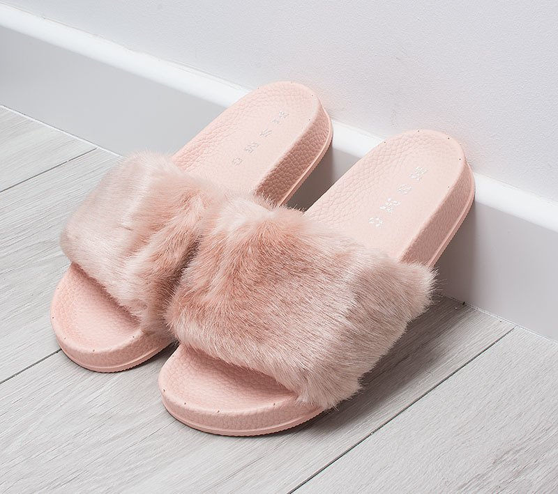 RÓŻOWE CIEPLUTKIE KLAPKI Z FUTERKIEM RIRI