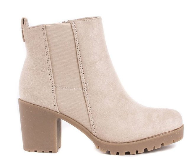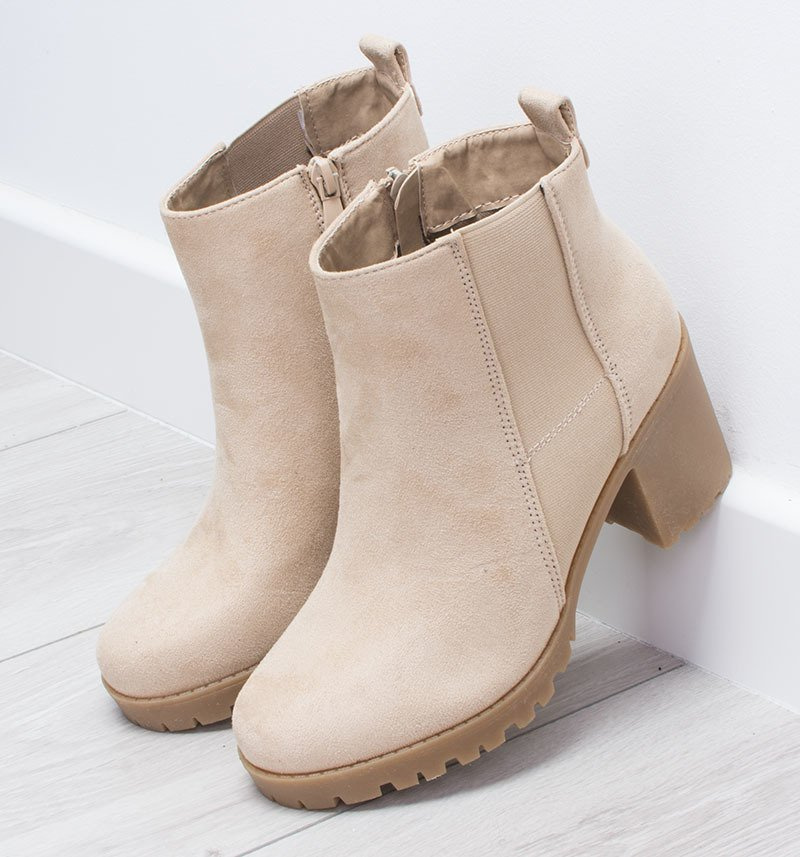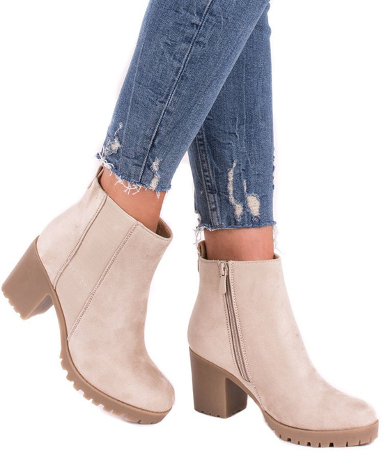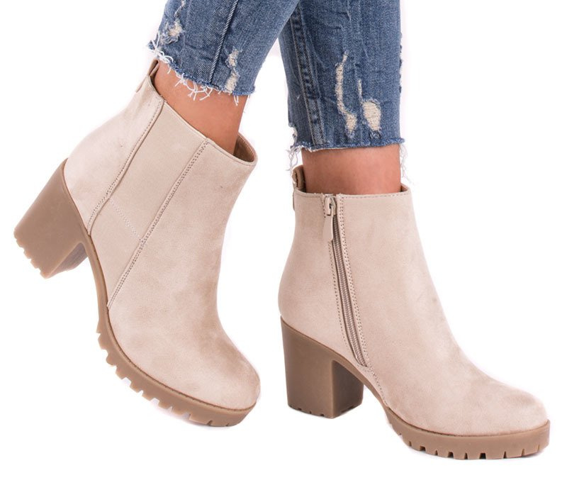 BEŻOWE ZAMSZOWE BOTKI NA SŁUPKU Z GUMĄ SHEA