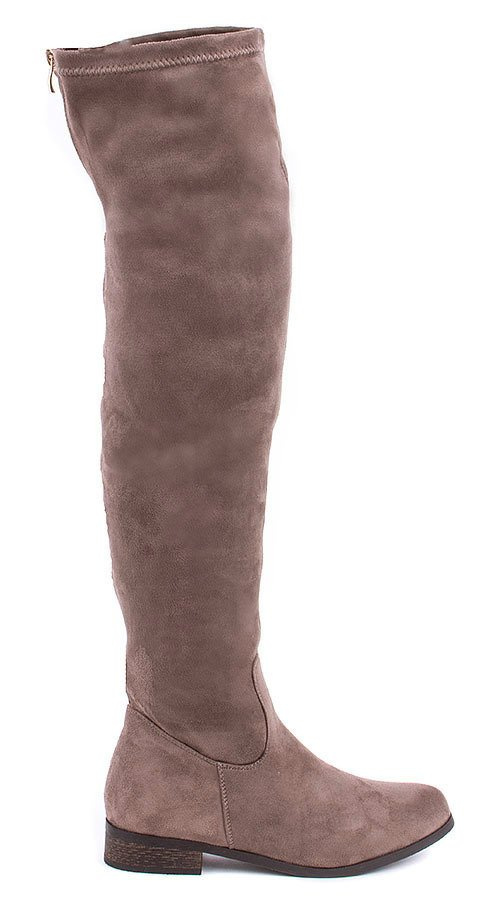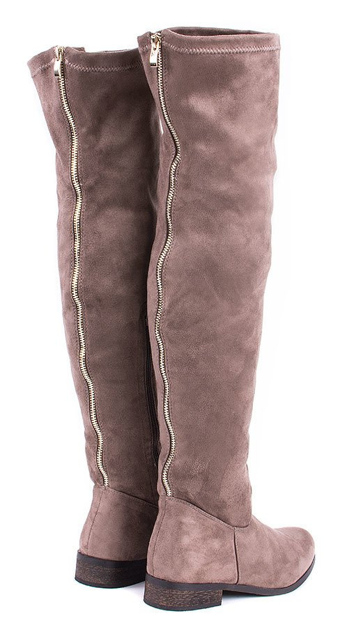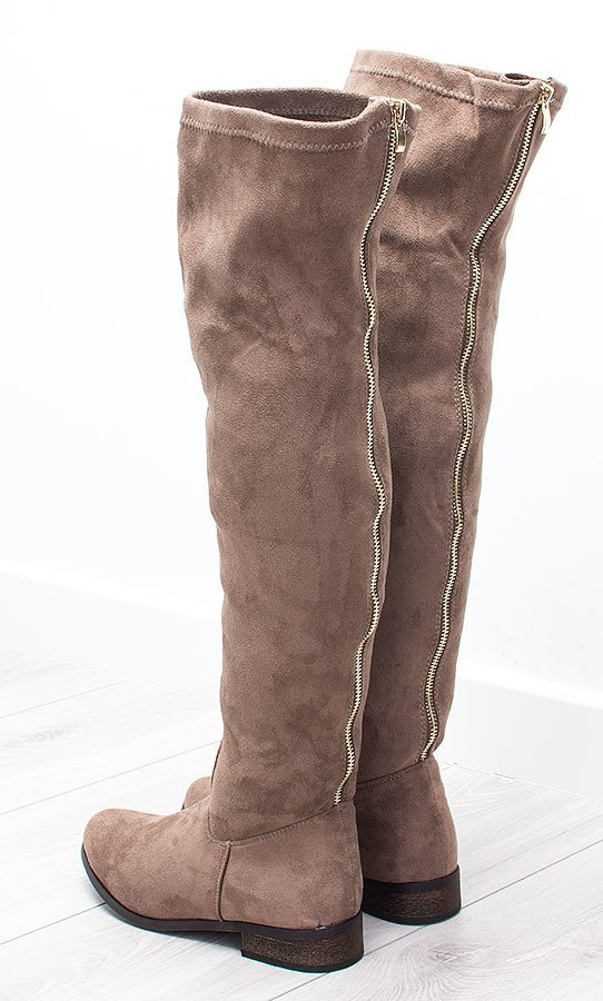 BEŻOWE ZAMSZOWE KOZAKI ZA KOLANO ZE ZŁOTYM ZAMKIEM INARE